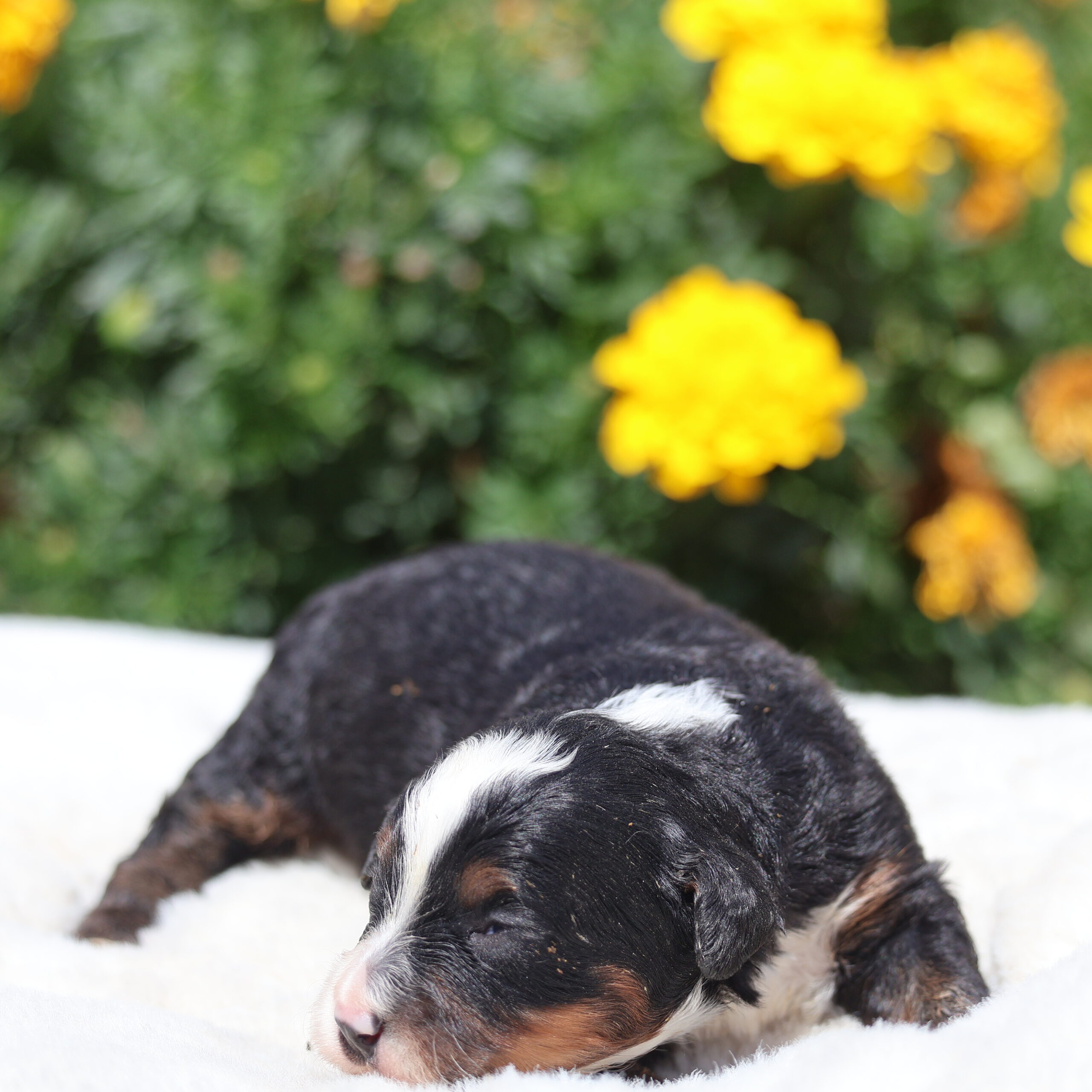 Cuddles is the heart and soul of our Bernedoodle family, and her name couldn’t be more fitting. True to her name, she has a warm, gentle spirit and an endless love for snuggling. Whether it’s curling up beside you on the couch or resting her head in your lap, Cuddles has a natural way of making everyone around her feel safe, loved, and completely at ease. As a mother, Cuddles is truly remarkable. She cares for her puppies with the utmost tenderness and devotion, always attentive and nurturing. From the moment her puppies are born, she showers them with love, ensuring they feel secure and well cared for. This same gentle energy extends to everyone she meets — she greets people with a soft wag of her tail and a heart full of affection. Cuddles’ calm and patient nature makes her a wonderful companion and an exceptional mom. She embodies the very best traits of the Bernedoodle breed — loyalty, kindness, and a loving disposition. With her sweet personality and caring heart, it’s no wonder that her puppies grow up to be just as affectionate and well-mannered as she is, bringing joy to families everywhere.