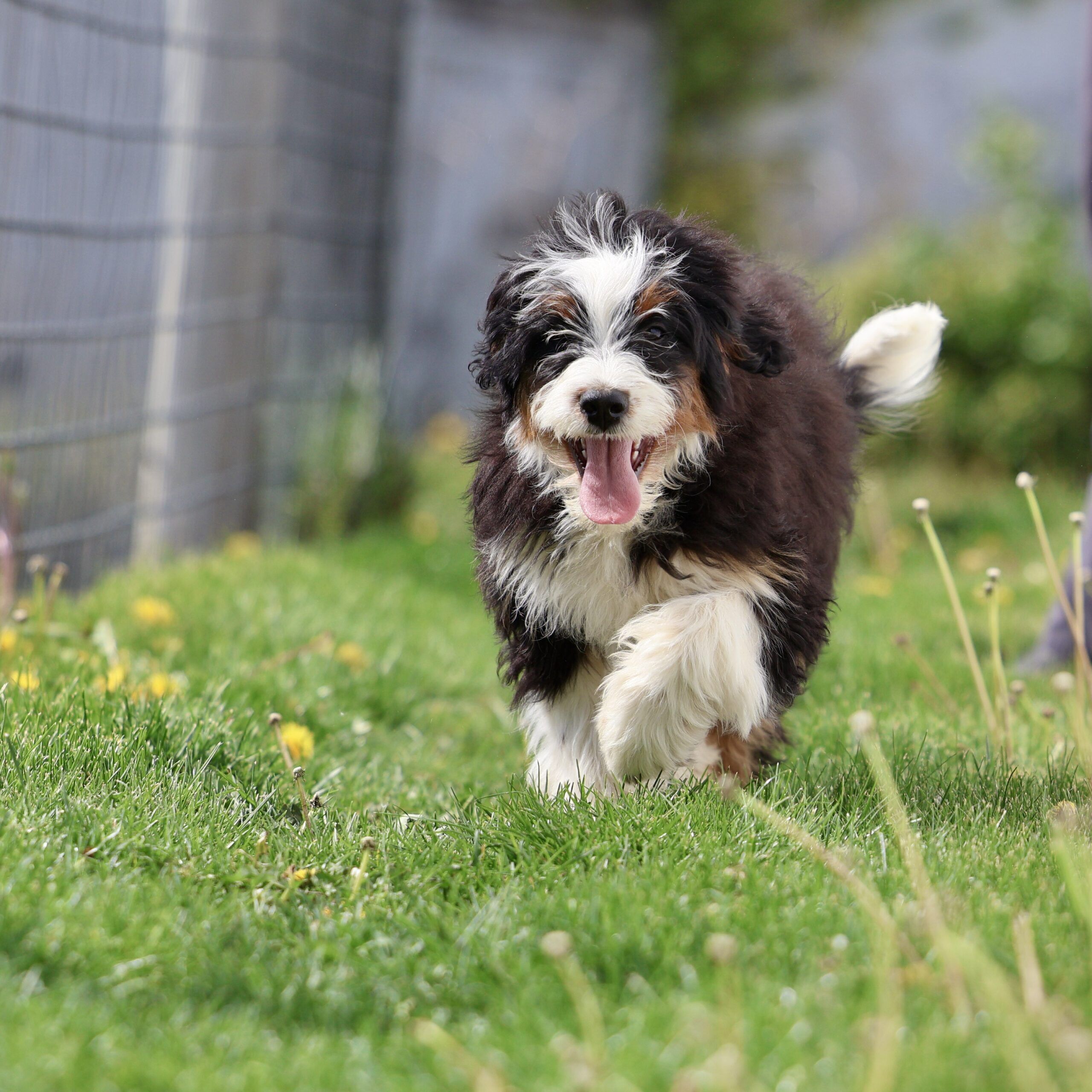 Keeping Your Bernedoodle active and engaged in some form of exercise controls weight, improves brain activity and extends their overall health.