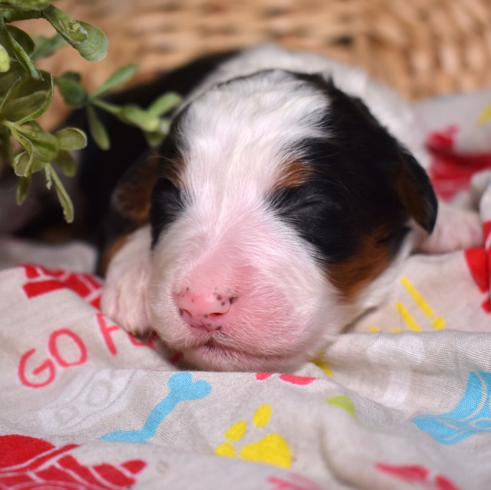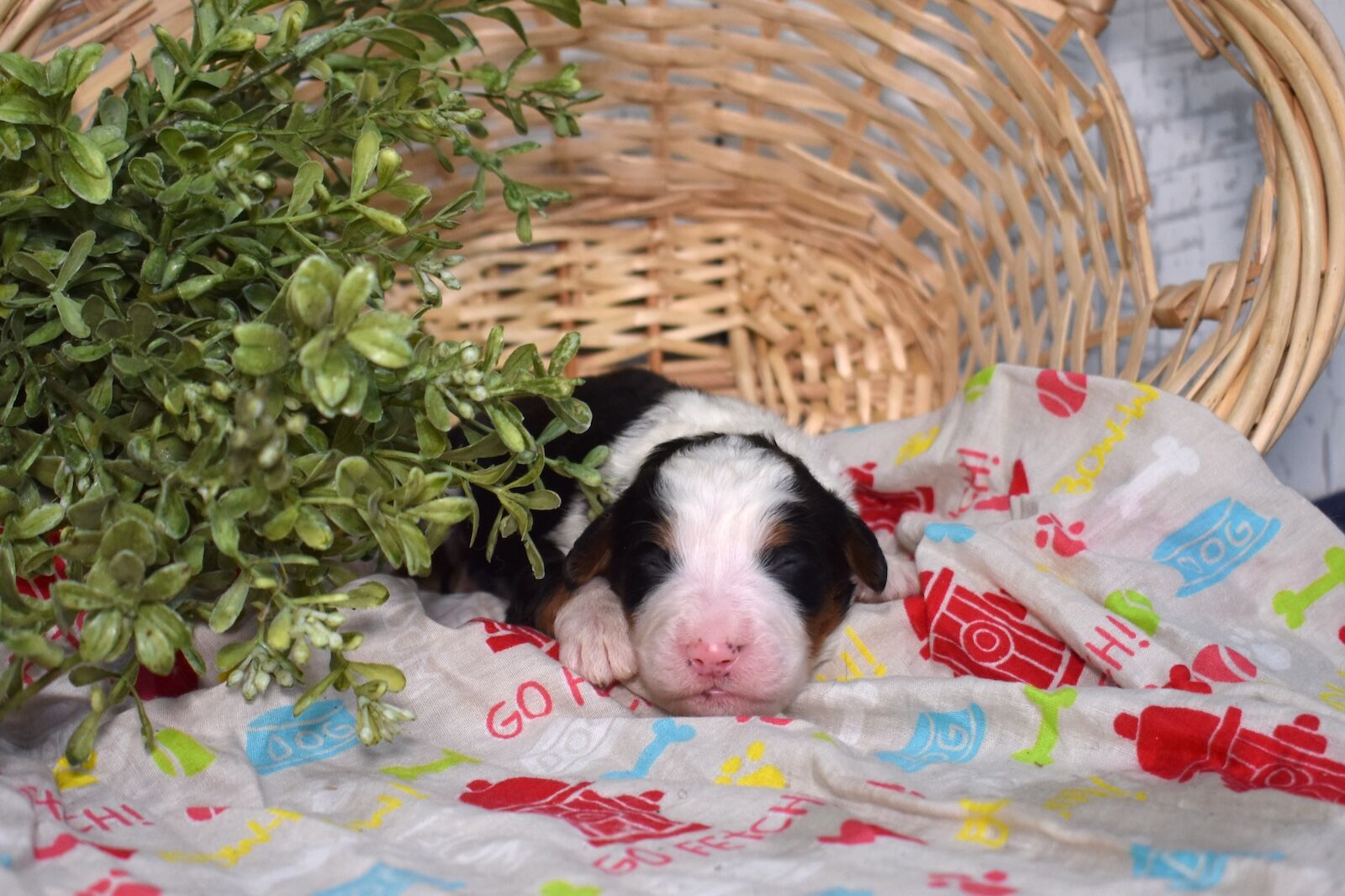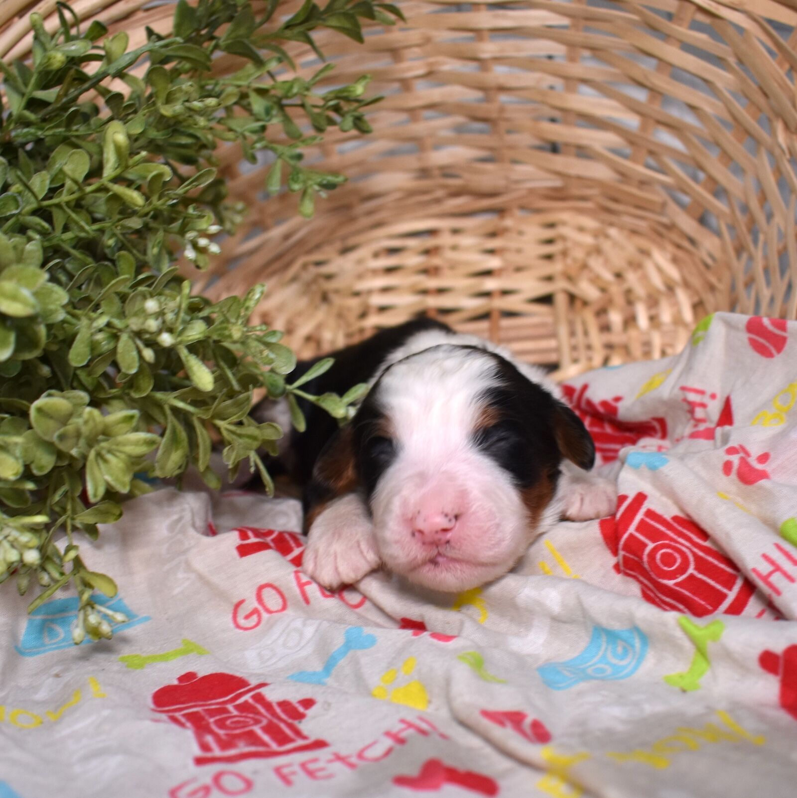 Janice is here and she is already stealing hearts! This gorgeous black tri color girl is one of our Bernedoodles for Sale with a plush, richly marked coat that is as classic as it gets. Born to Aubry, our beloved 115 pound genetic tested Bernese mom with a heart as big as her playful personality, and a stunning 55 pound merle standard poodle dad who carries himself like royalty, Janice has exceptional genetics on both sides. Those bold black tri markings are just the beginning — we are so eager to watch her bloom and discover the one of a kind personality that is all her own.
