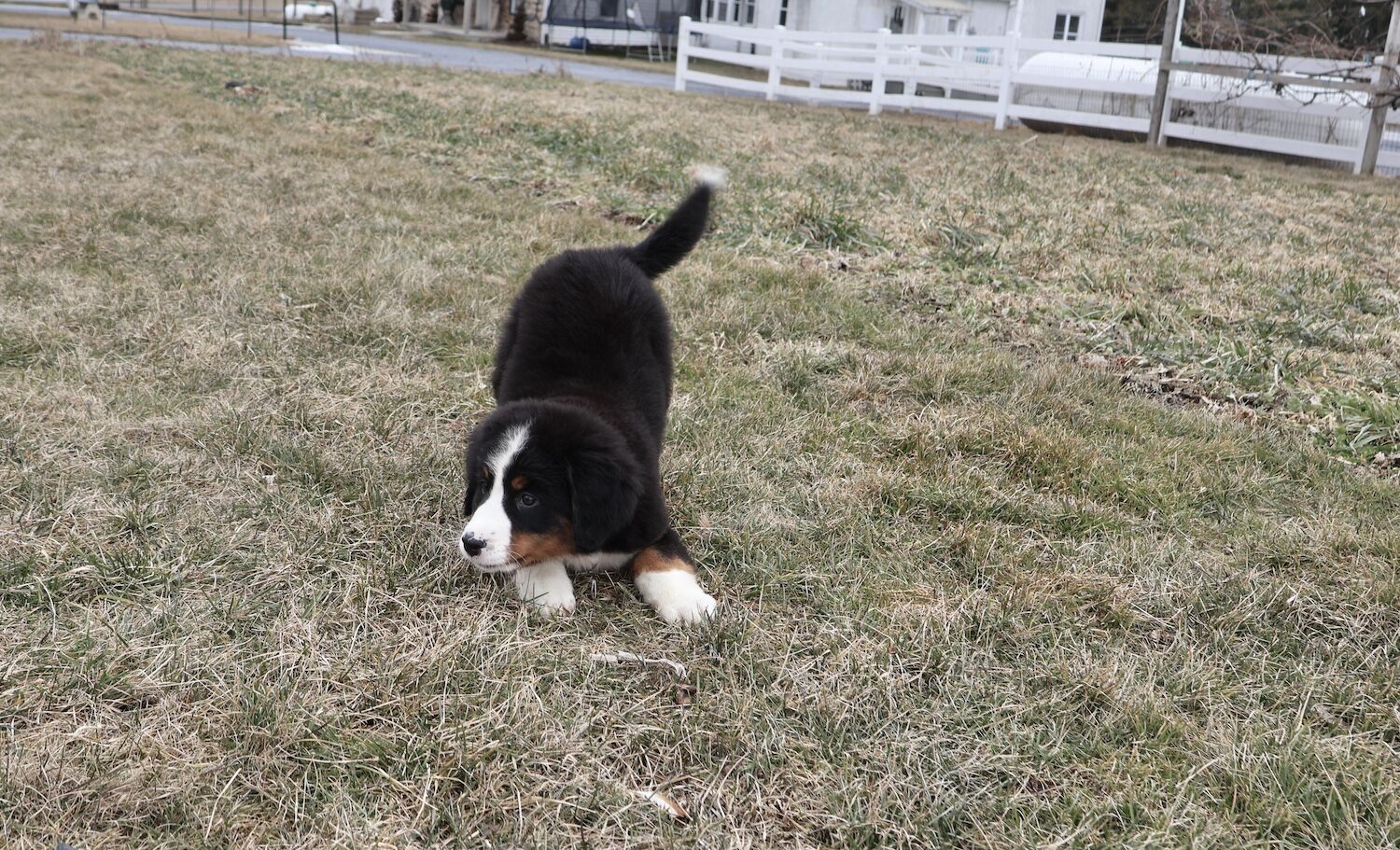 Berners, in general, are very healthy. As responsible breeders, we ensure that our parents are screened for any health condition such as: hip and elbow dysplasia, blood disorders, cancers, and progressive retinal atrophy. As a future owner of a Berner, you should be aware that all large breeds are prone to bloat, a sudden and life-threatening stomach condition. Berner’s owners should learn what signs to look out for, and what to do should these signs appear. Additionally, and as recommended for any dog, a Berner’s ears should be checked regularly for signs of infection, and the teeth should be brushed often, using a toothpaste designed for dogs.