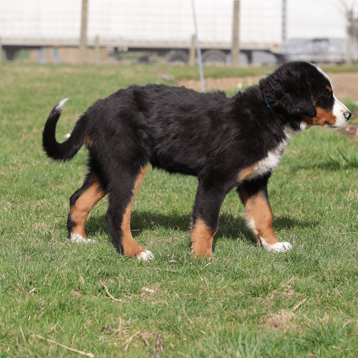 Berners, in general, are very healthy. As responsible breeders, we ensure that our parents are screened for any health condition such as: hip and elbow dysplasia, blood disorders, cancers, and progressive retinal atrophy. As a future owner of a Berner, you should be aware that all large breeds are prone to bloat, a sudden and life-threatening stomach condition. Berner’s owners should learn what signs to look out for, and what to do should these signs appear. Additionally, and as recommended for any dog, a Berner’s ears should be checked regularly for signs of infection, and the teeth should be brushed often, using a toothpaste designed for dogs.