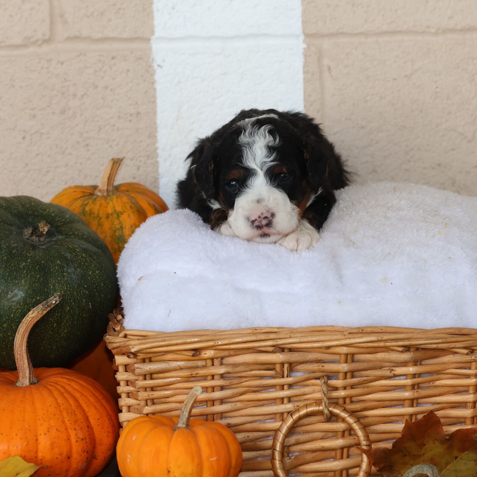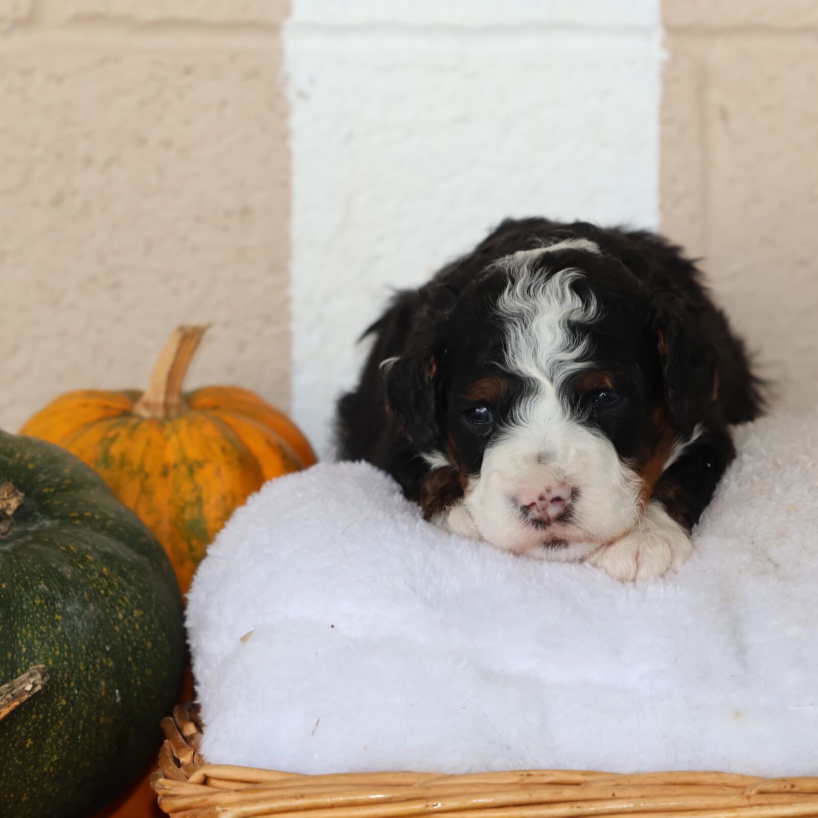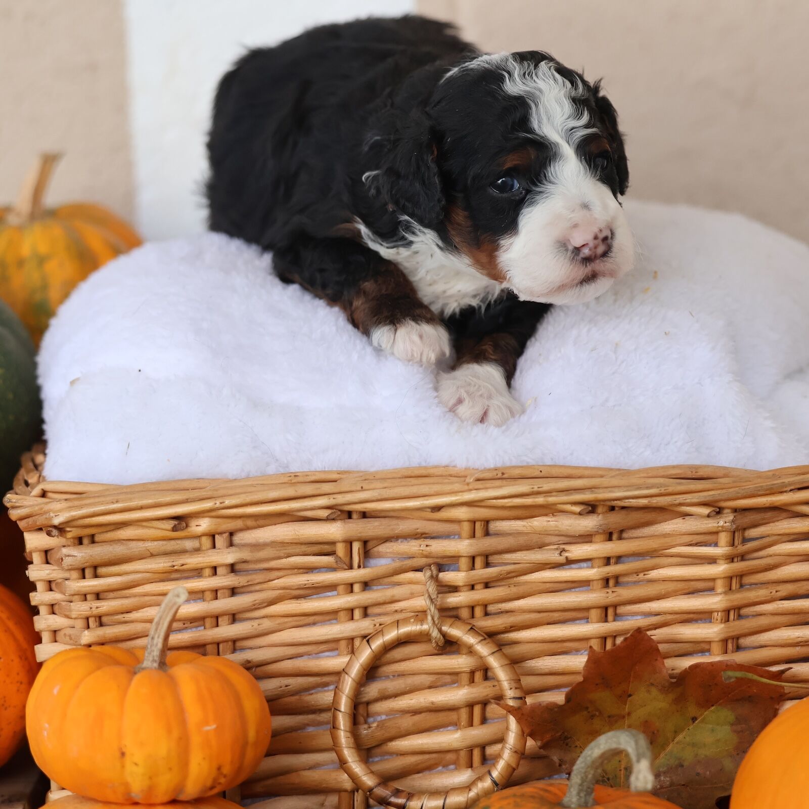 Although our litters are very consistent to avoid any in-breeding, no two Bernedoodles are identical. The genes from the parent change the litter in infinite permutations of coat marking. If you’d like to choose your own puppy marking, perhaps you should coordinate with us to get your puppy after it has been born and maybe even trained. But your options could be limited to what’s available. Since Bernedoodles are so popular, sometimes they are reserved even before they’re born.