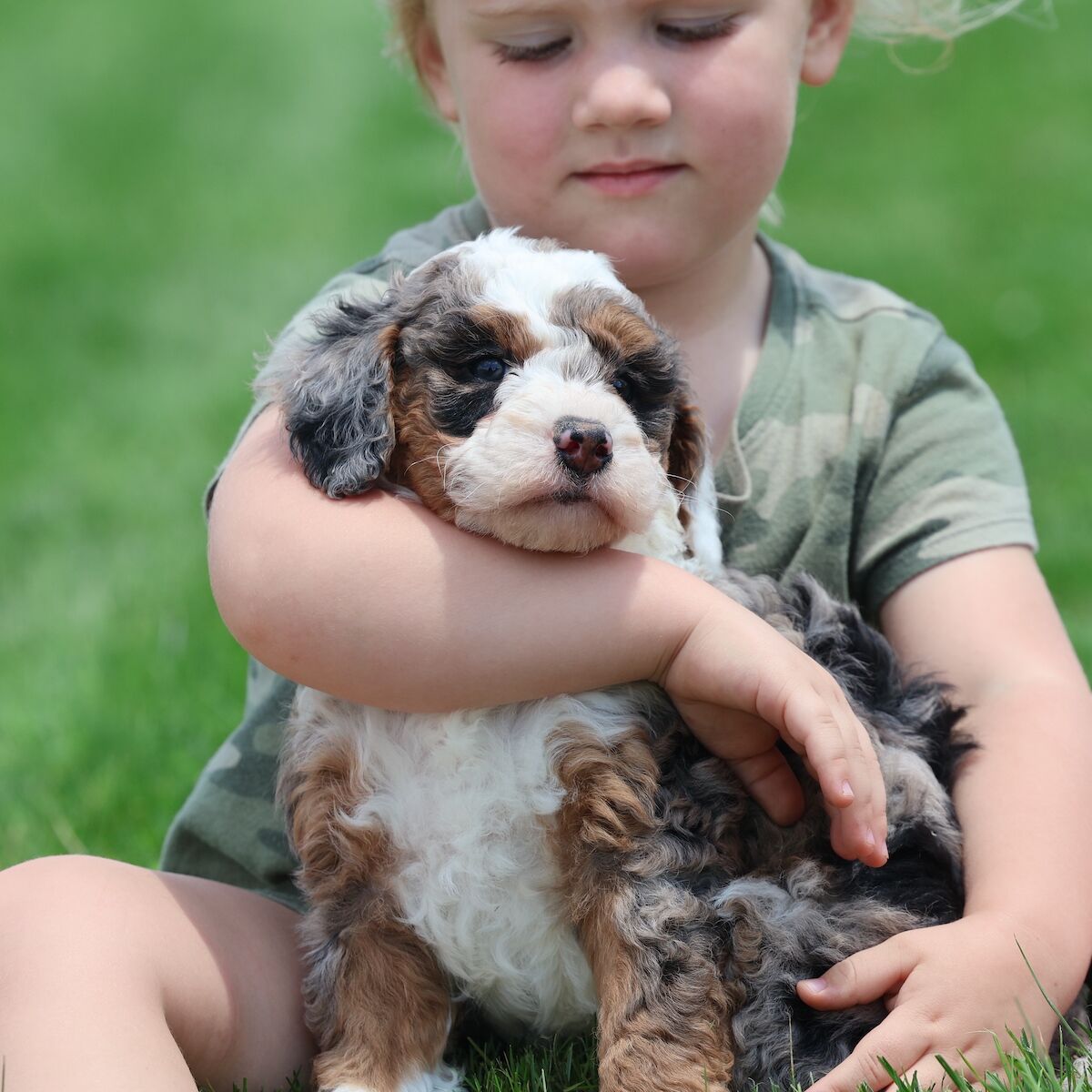 Researching the history of bernese mountain dogs you will quickly learn as dogs their purpose was to protect the herd. Mixing that history with the poodles intellegence, silliness and desire play. Bernedoodles boast characterestics that lead them to bonding with children via play and the inherit pedigree to look out for them.