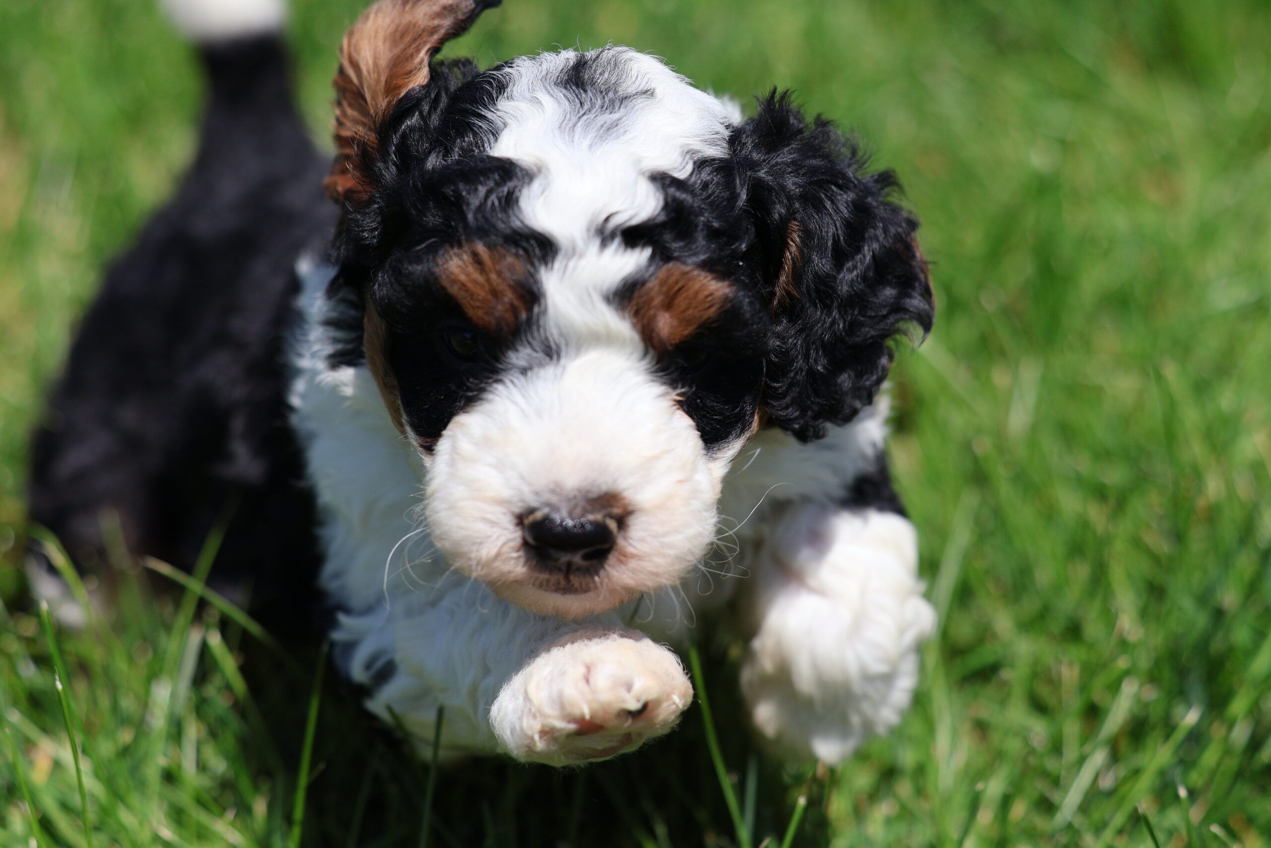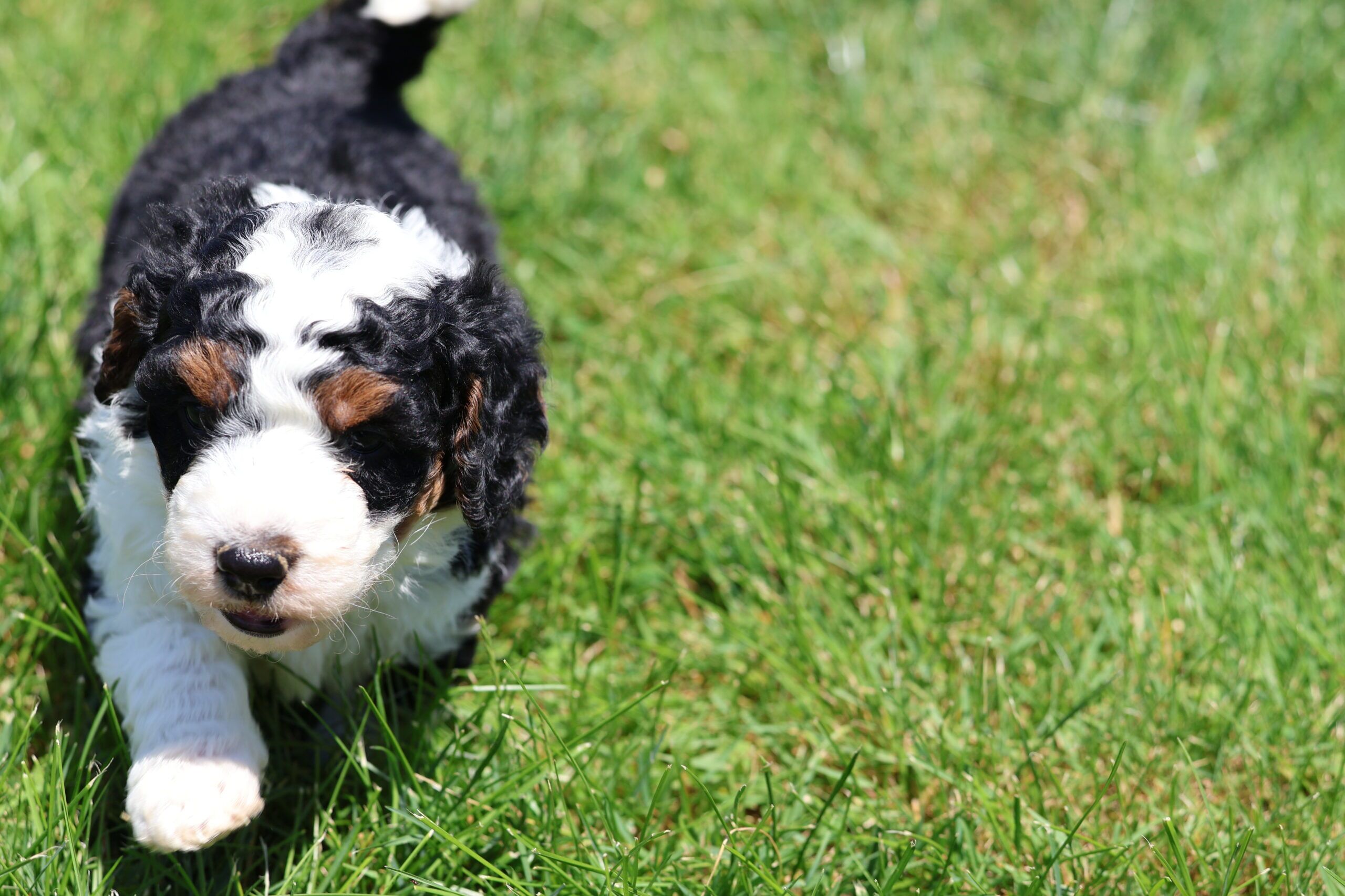 Bernedoodle have a complex mix of long and wooly coats from the Bernese Mountain and the Poodle. Brush your Bernedoodle weekly to minimize shedding and an overgrown coat. Not only it will help your dog look stunning, but it improves coat quality, reduce knotting, minimizes skin conditions and dandruff, and regulates temperature. As with all breeds, the nails should be trimmed regularly, as overly long nails can cause the dog pain, structural problems, and accidental scratching. If you can hear your dog clicking when he/she walks, that is a great indicator that nails are too long.