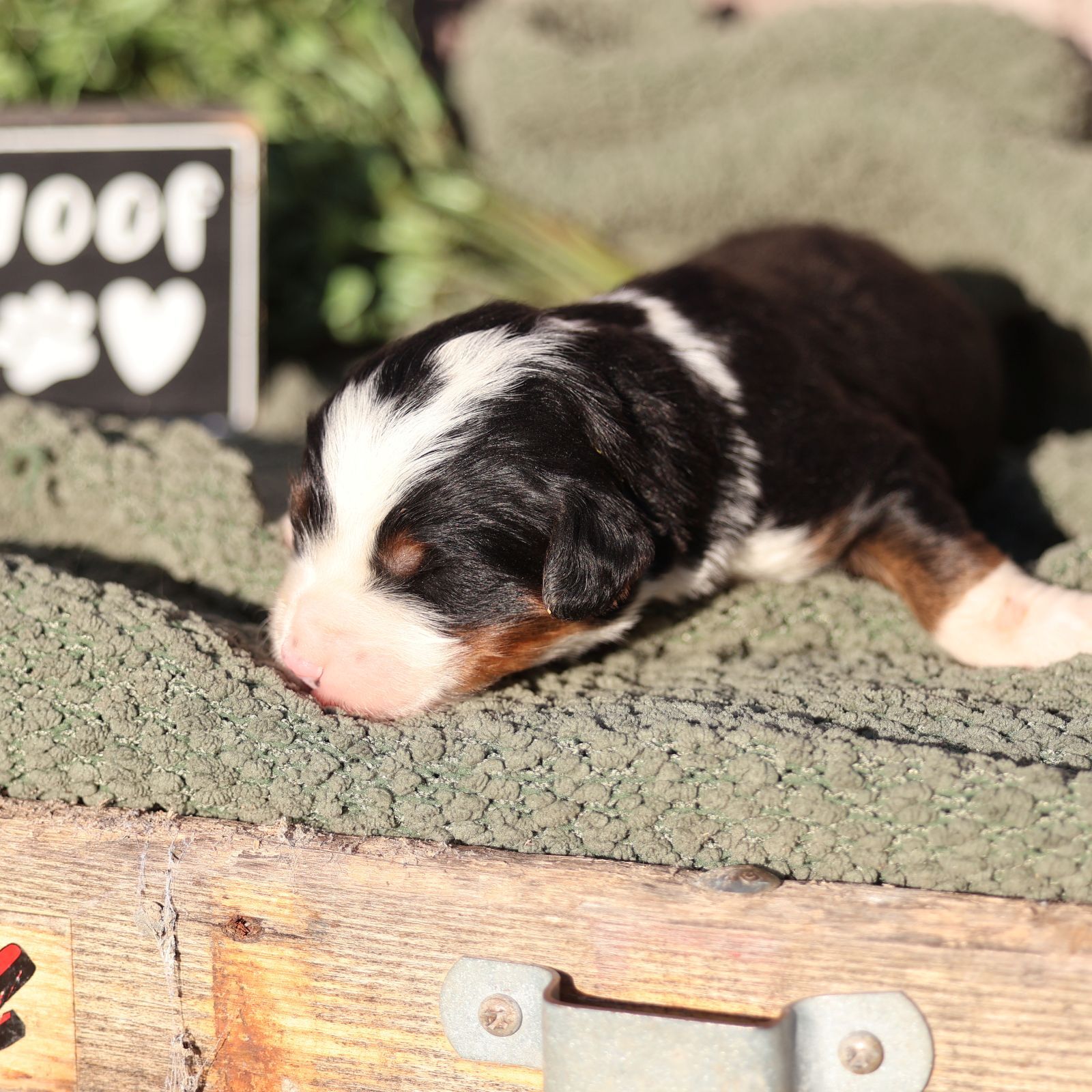 Meet Daisy, our gorgeous purebred Bernese Mountain Dog and the heart of our home. While many Bernese females can be quite large and imposing, Daisy is on the smaller side, more compact and athletic pounds. Her smaller stature makes her the perfect mother for our Mini and Medium Bernedoodle litters, passing on that classic “Berner” look in a more manageable size. She has been fully DNA health-tested to ensure she only passes on the best traits to her offspring.