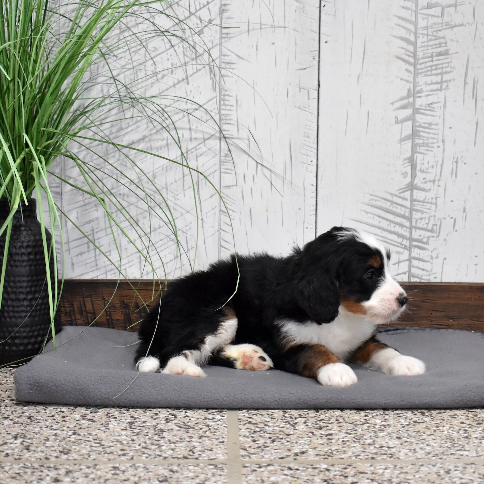 Each bernedoodles coat is unique due to their genetics. However, generally we consider all our bernedoodles to be minimal to none when it comes shedding.