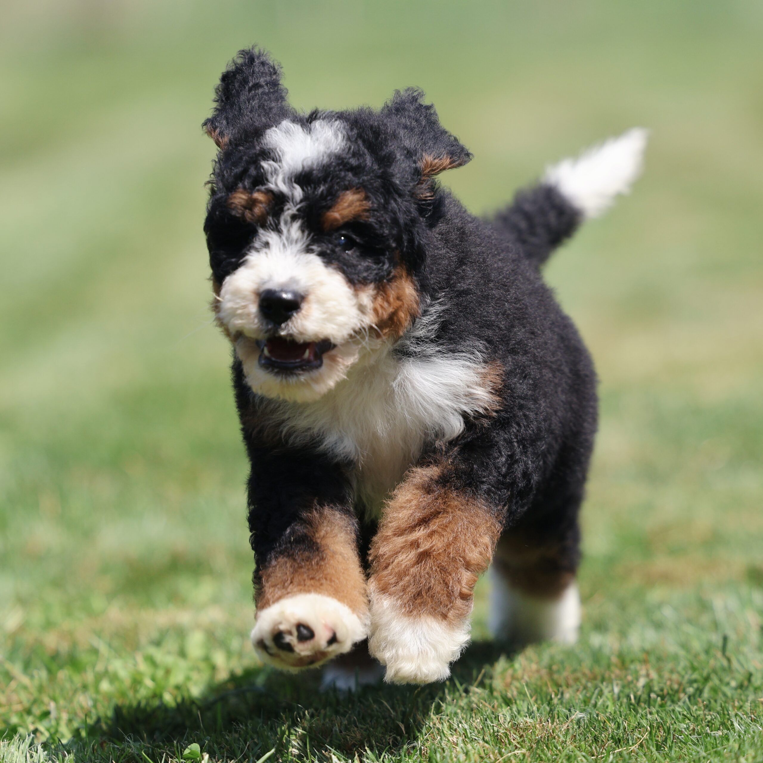 Bernedoodle have a complex mix of long and wooly coats from the Bernese Mountain and the Poodle. Brush your Bernedoodle weekly to minimize shedding and an overgrown coat. Not only it will help your dog look stunning, but it improves coat quality, reduce knotting, minimizes skin conditions and dandruff, and regulates temperature. As with all breeds, the nails should be trimmed regularly, as overly long nails can cause the dog pain, structural problems, and accidental scratching. If you can hear your dog clicking when he/she walks, that is a great indicator that nails are too long.