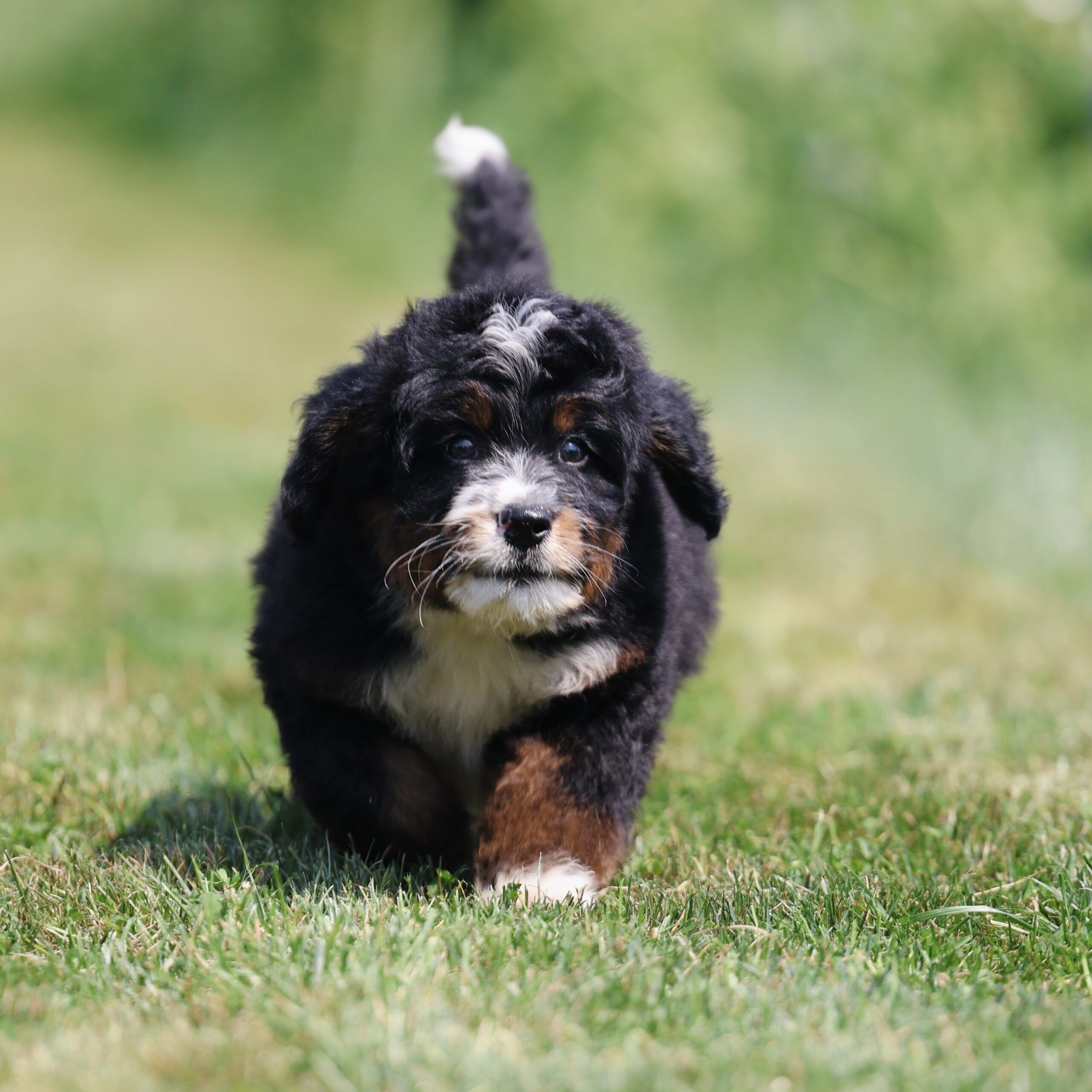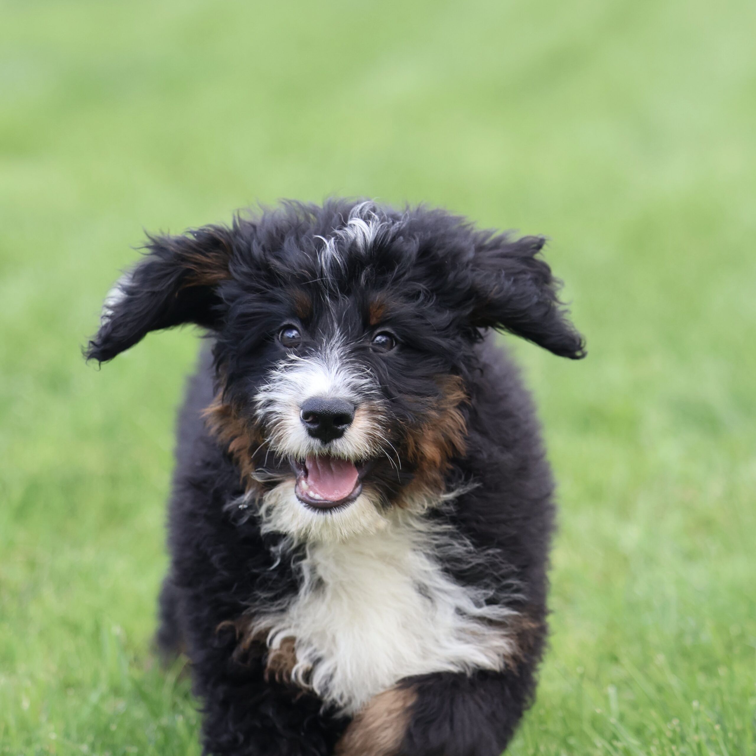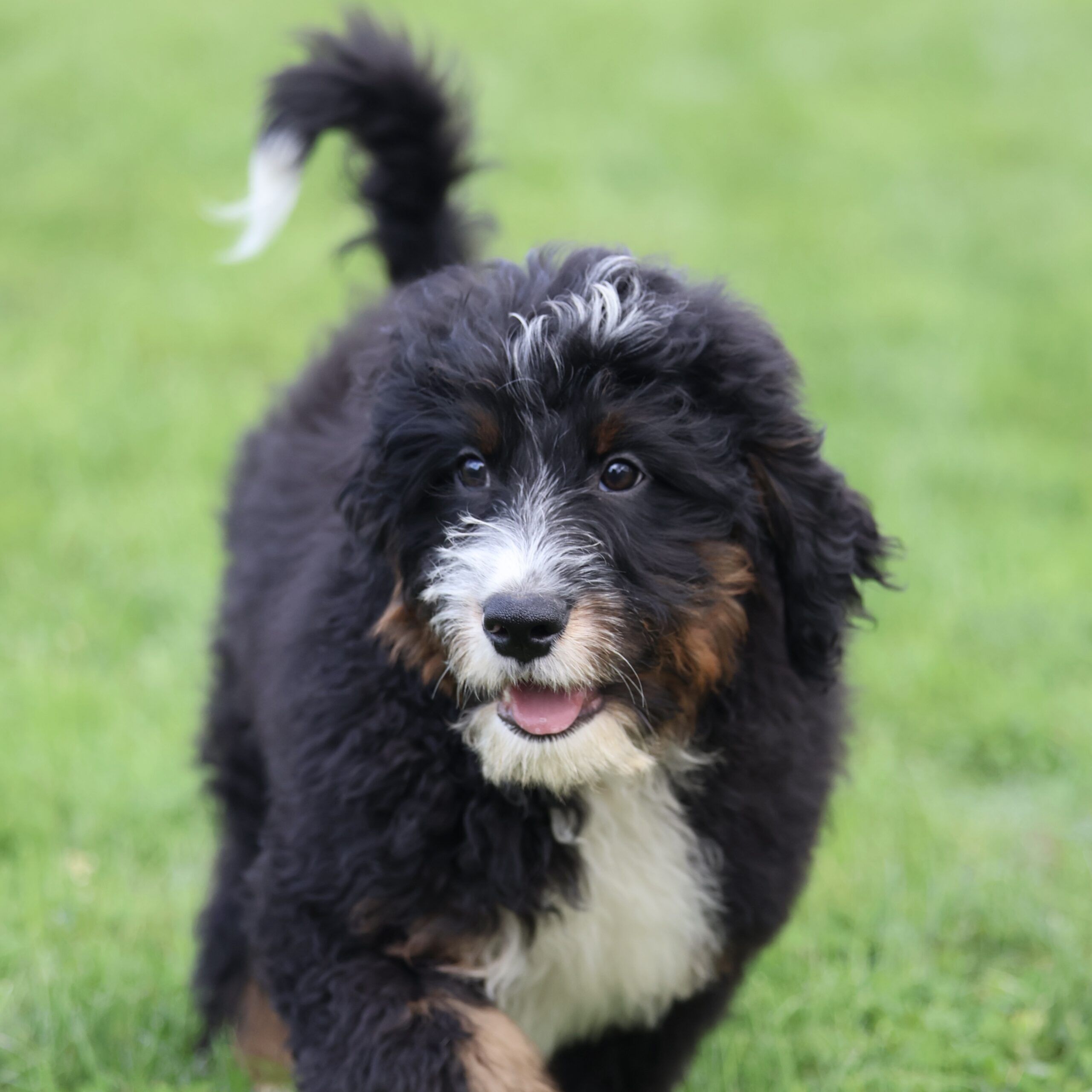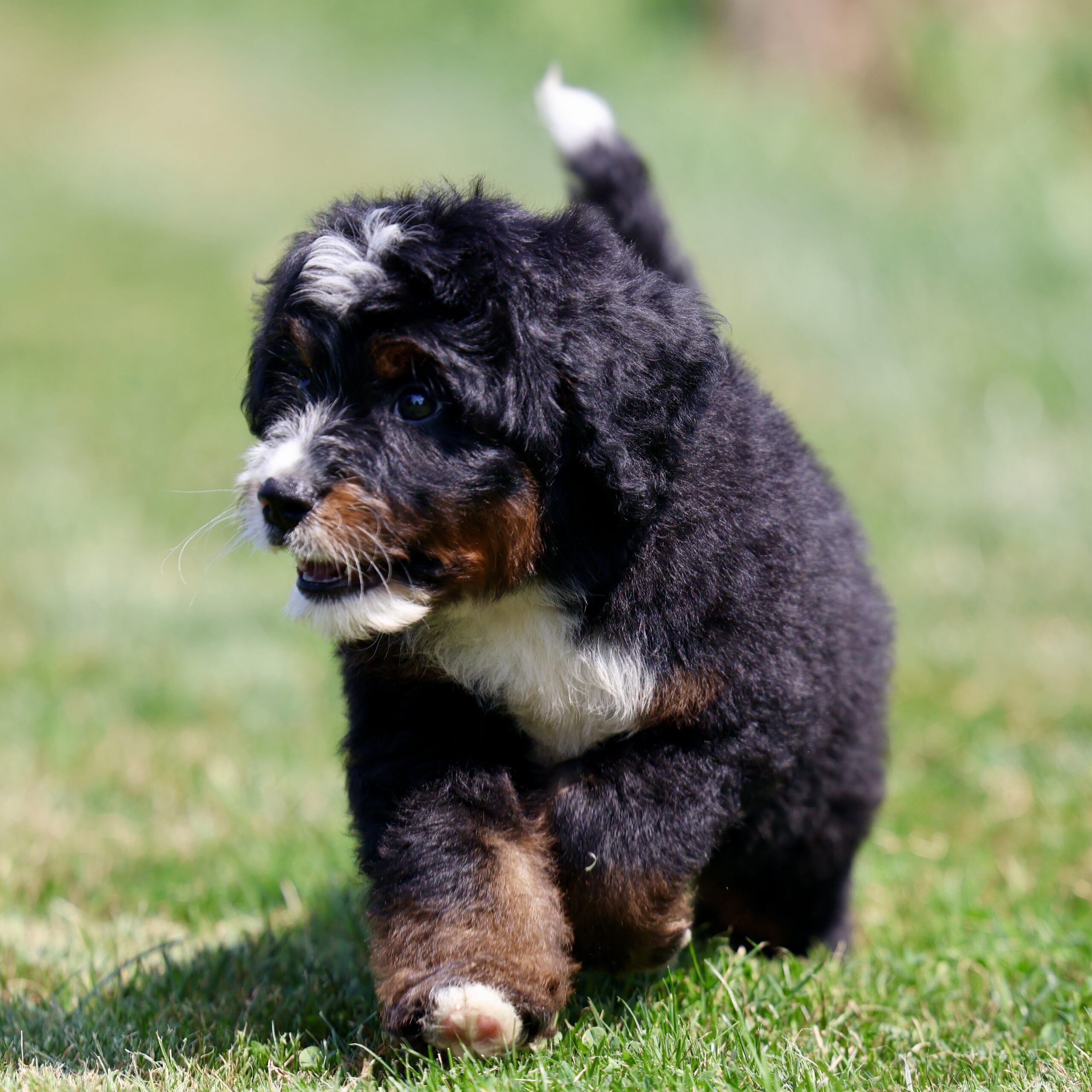 Searching for mini bernedoodles hypoallergenic? Welcome to Berry Patch Puppies, home of Quigley, a perfect tri-color,  male mini bernedoodle pup!