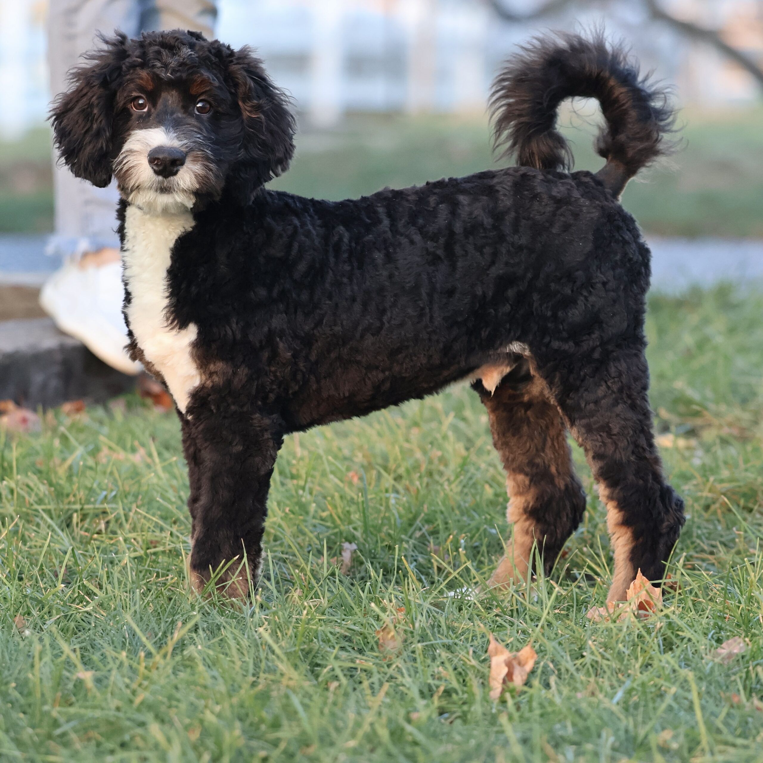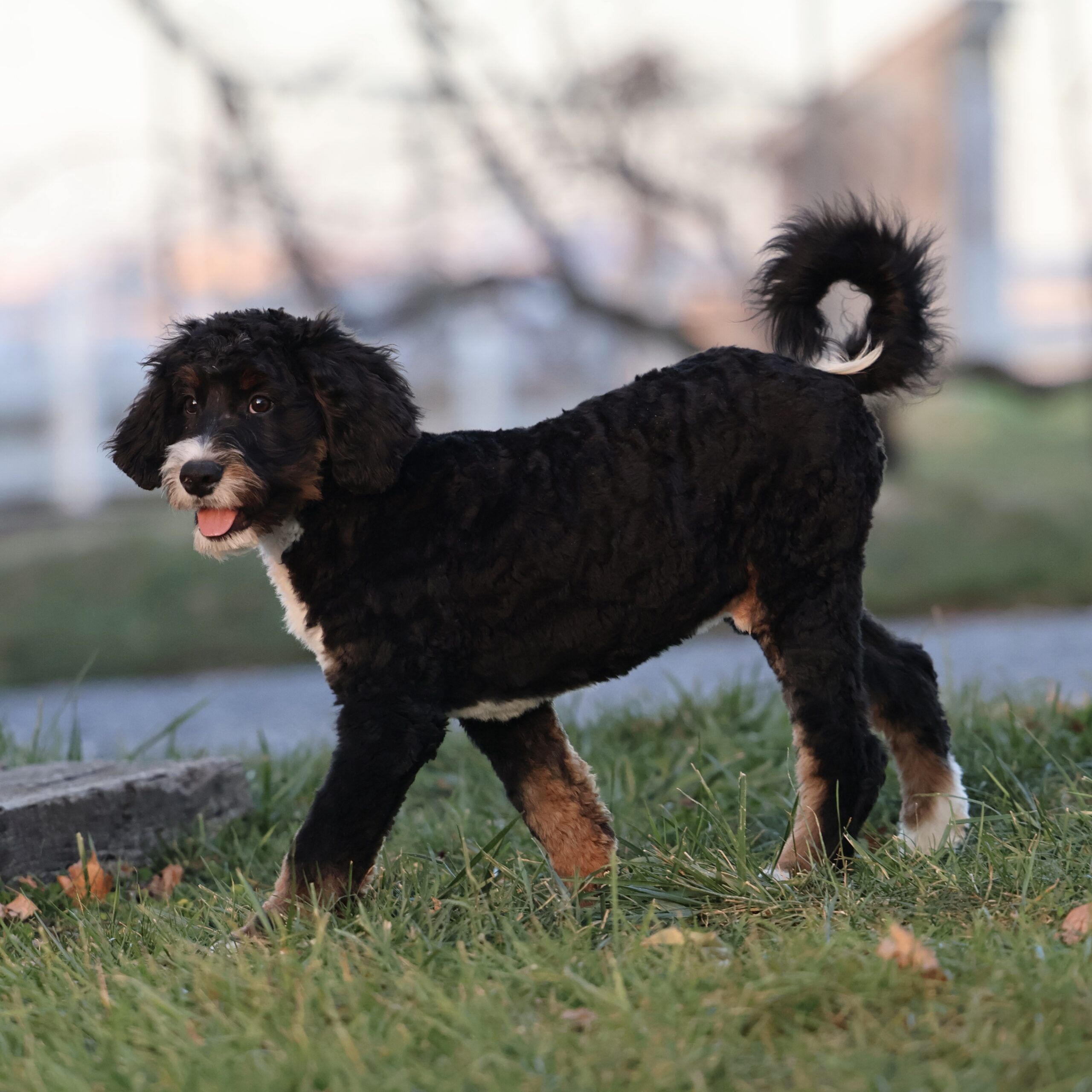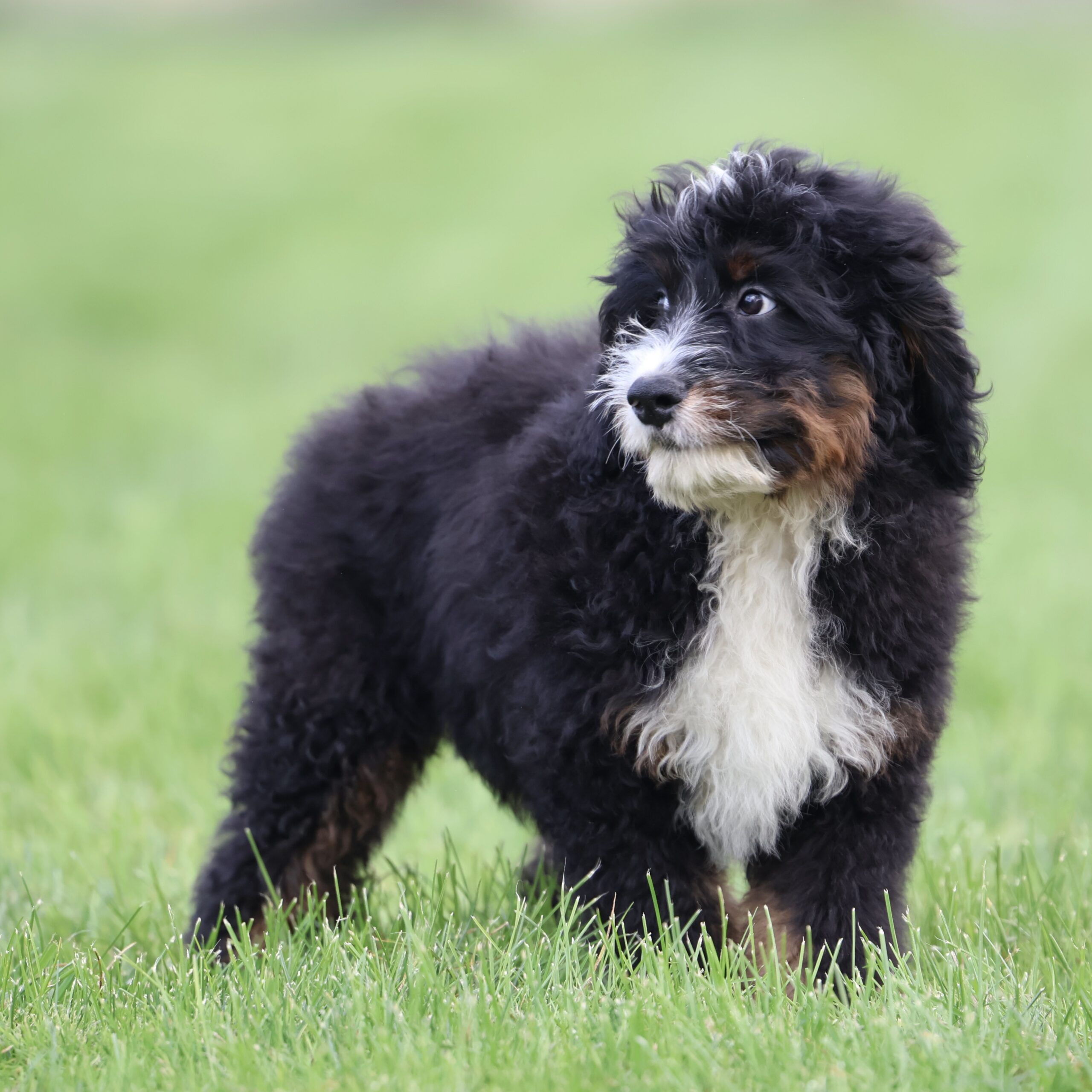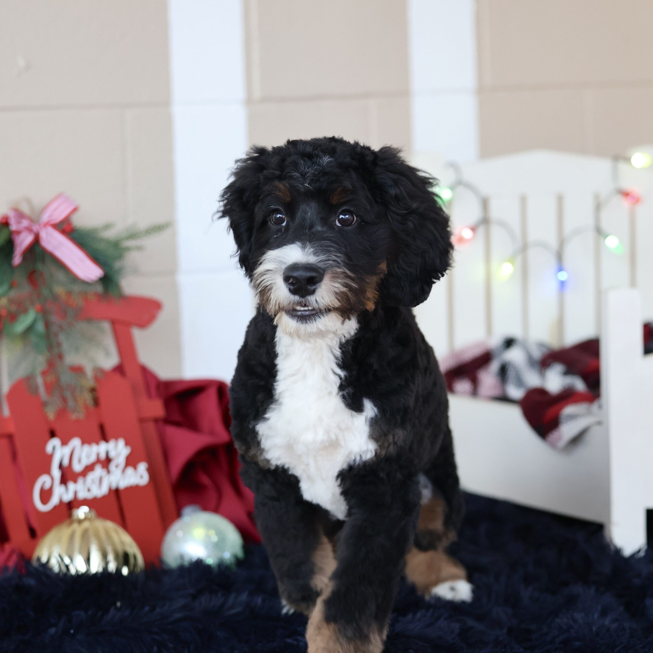 Searching for mini bernedoodles hypoallergenic? Welcome to Berry Patch Puppies, home of Quigley, a perfect tri-color,  male mini bernedoodle pup!