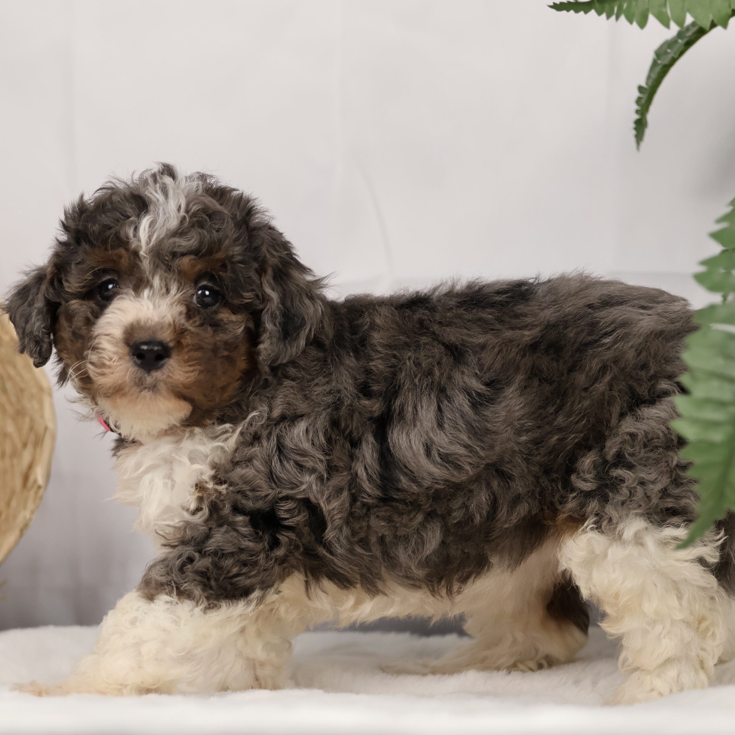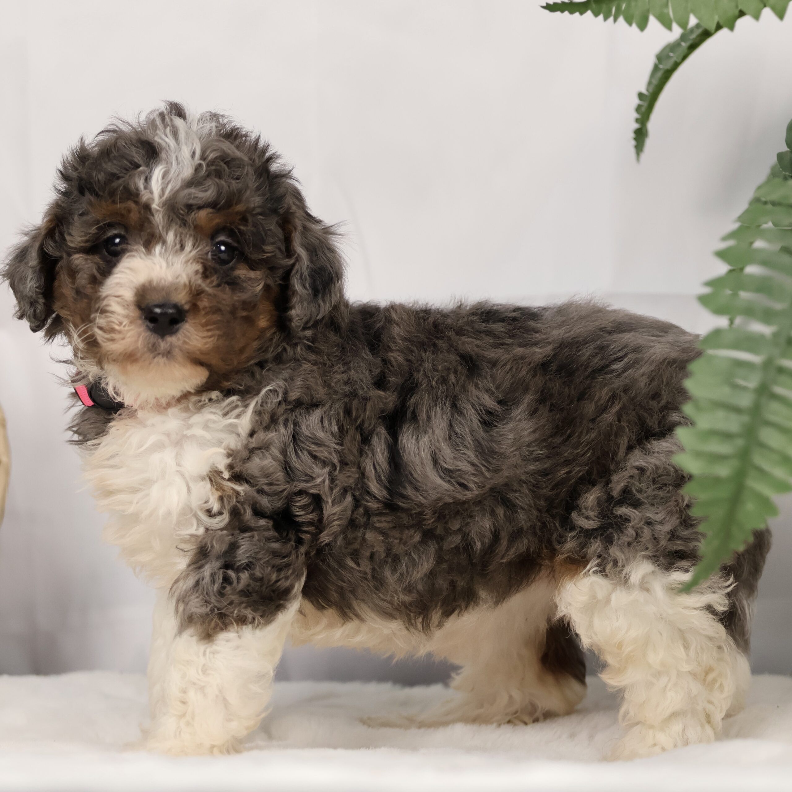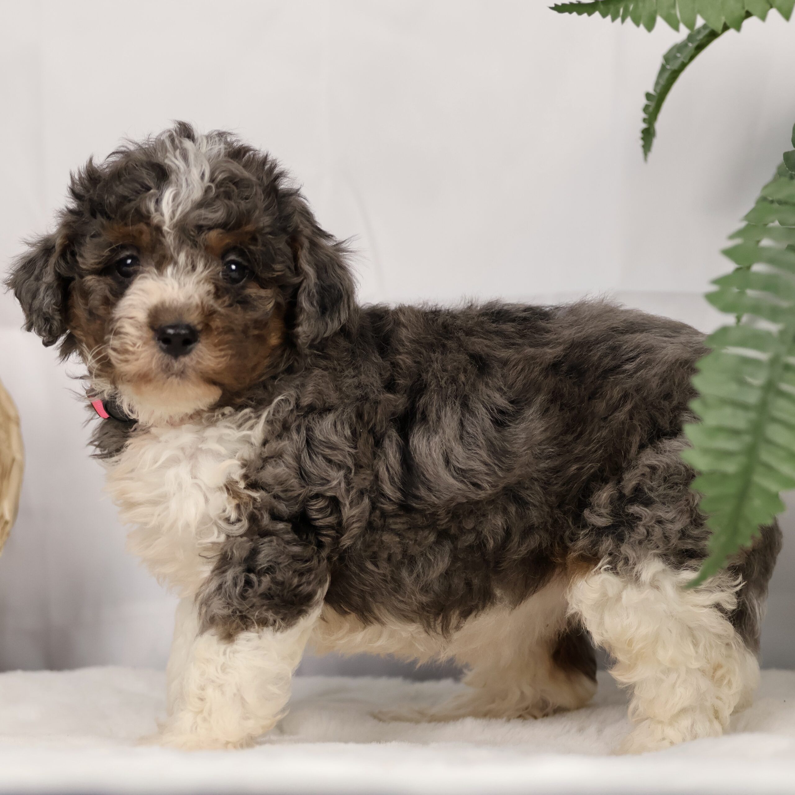 Searching for puppies for sale in lancaster pa? Don’t miss out on our sweet Sidney, a perfect mini bernedoodle female, who comes with a two year health guarantee and vet checked. We believe in going above and beyond for our puppies, they deserve the best care. That’s why all our parents are genetic tested and have access to both indoor and outdoor facilities. As well as all our dogs and puppies work with our dedicated socialization team member to keep them well socialized and engaged with playing. Plus, all our puppies eat raw dog food to help give their gut health a boost. Don’t miss out on our stunning mini bernedoodle puppies for sale !