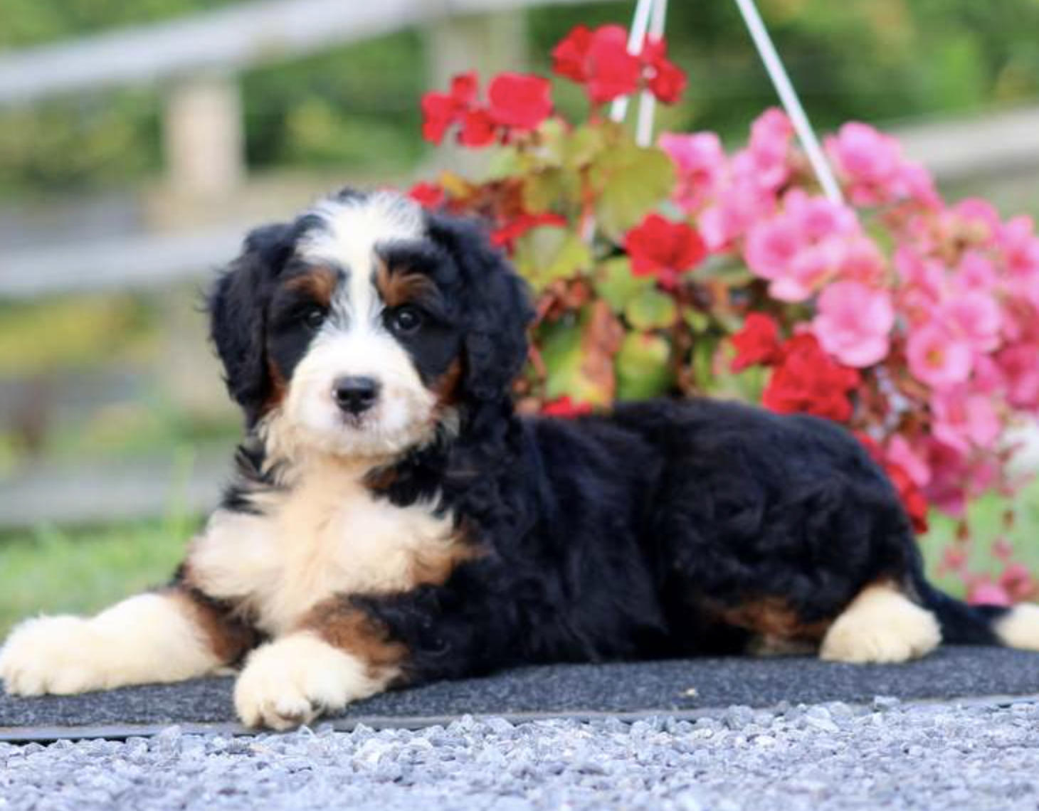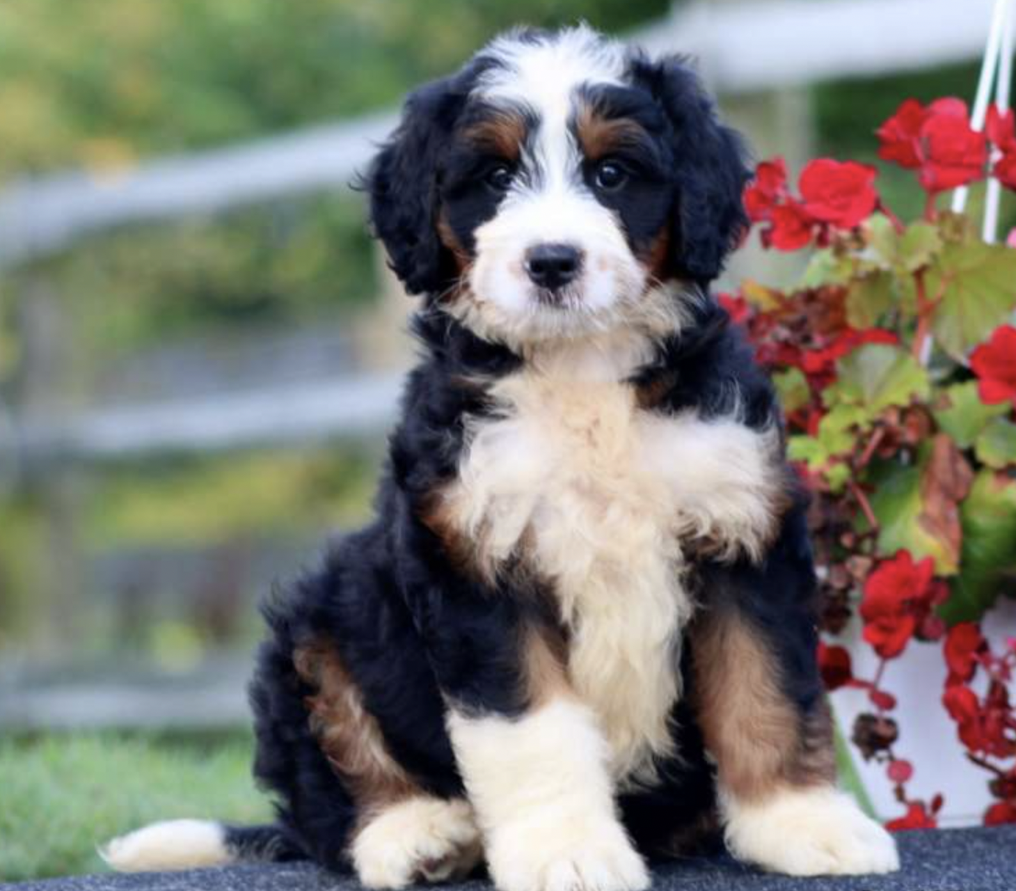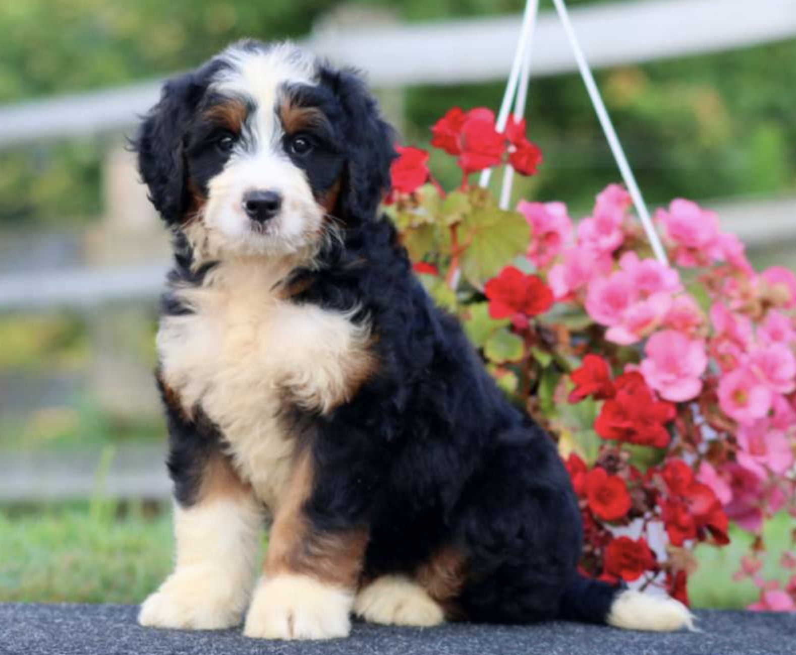 The bernedoodle is a cross between a Bernese mountain dog and a poodle.