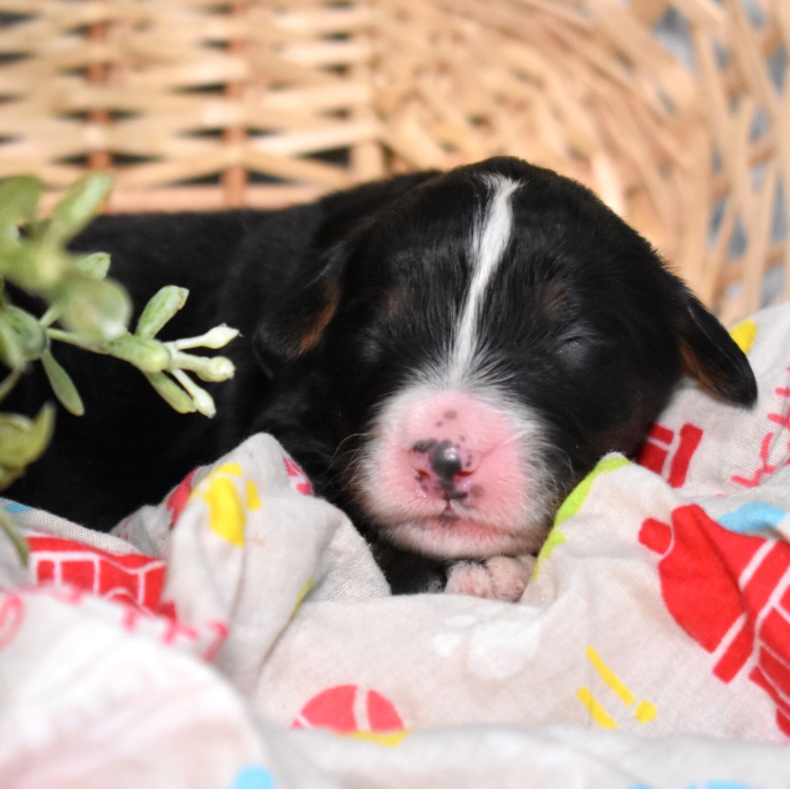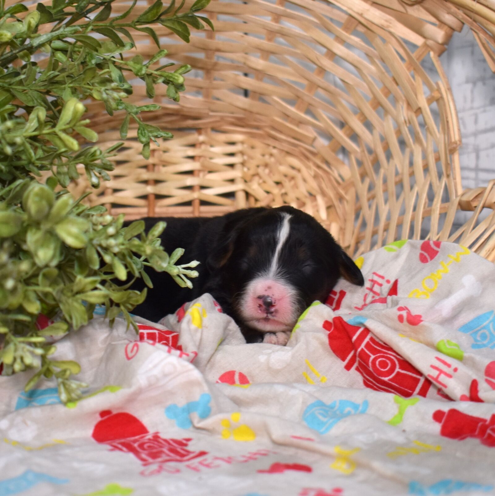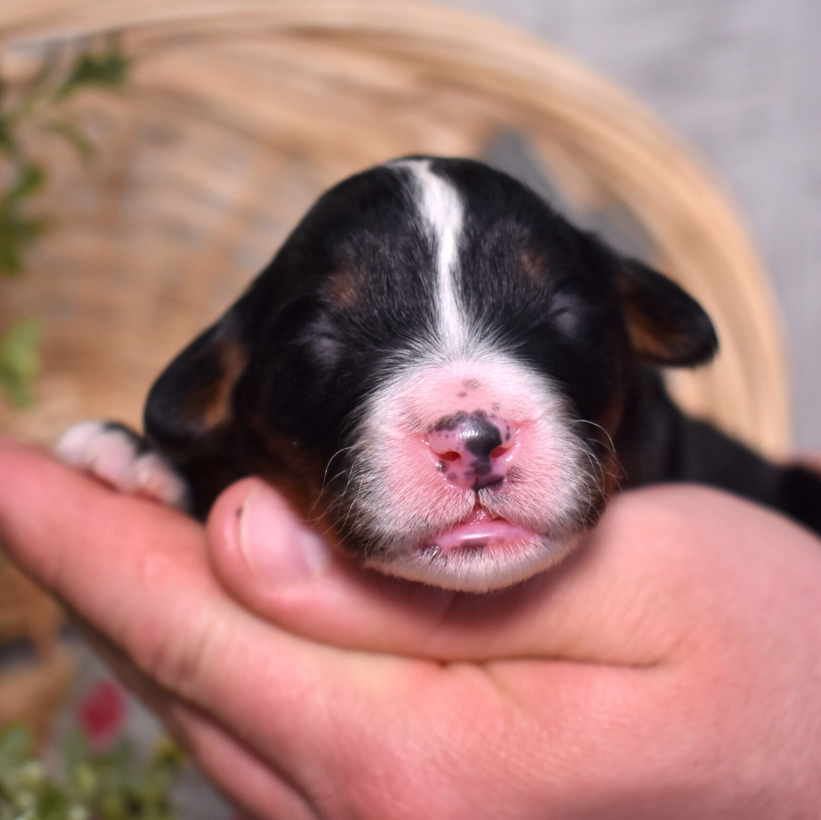Rachael is classic elegance in the most beautiful black tri color package. This stunning Standard Bernedoodle has those rich bold markings that never go out of style and a quiet observant presence that already sets her apart from the rest of the litter. Born to our incredible 115 pound genetic tested Bernese mom Aubry whose playful spirit and loving nature are the heart of our program, and a 55 pound merle standard poodle dad whose royal persona speaks for itself, Rachael has a foundation that any puppy would dream of. We are so excited to watch her grow and step fully into the personality we just know is going to be as beautiful as she is.